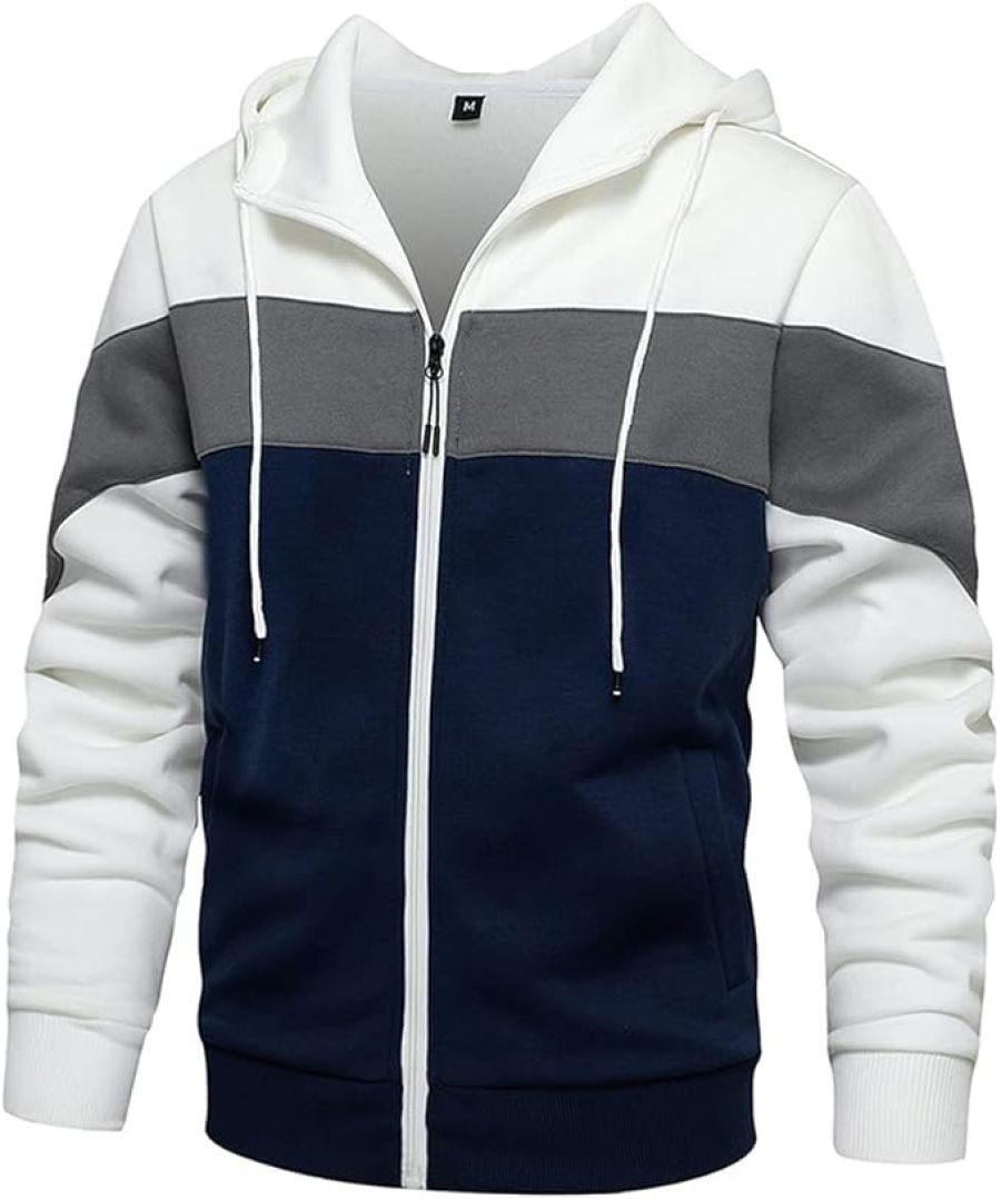 Men's Hoodies Zip Front Sweatshirt Color Blocking Hooded